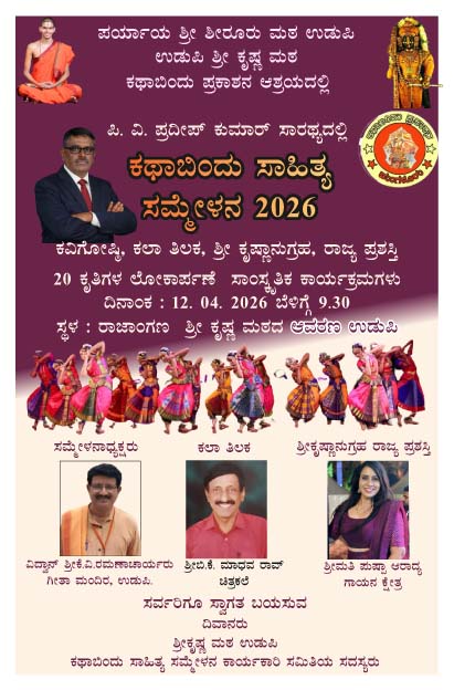 ಪಿ.ವಿ. ಪ್ರದೀಪ್ ಕುಮಾರ್ ಸಾರಥ್ಯದಲ್ಲಿ ಕಥಾಬಿಂದು ಸಾಹಿತ್ಯ ಸಮ್ಮೇಳನ 2026 ಉಡುಪಿಯ ಶ್ರೀ ಕೃಷ್ಣ ಮಠದ ರಾಜಾಂಗಣದಲ್ಲಿ ಏಪ್ರಿಲ್ 12 ರಂದು ಜರುಗಲಿದೆ.